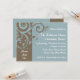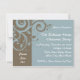 ousados e impressionantes convites de festa modernos contemporâneos azul pó, cogumelo e branco para casamentos, aniversários, festas de Natal ou qualquer ocasião especial. Azul empoeirado com sotaques brancos, desenho de videiras sofisticadas em espiral. Personalize online com os detalhes do seu evento.