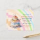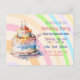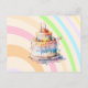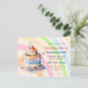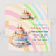 Convites de aniversário para meninas, crianças ou adultos. Bolo de aniversário com fantasia com glacê roxo, rosa, azul e amarelo e velas.