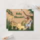 Bela selva chá de fraldas, perfeito para um menino ou menina! Adicione o texto personalizado online. Girafa, leão, zebra e macaco. bege macio, cores neutras amarelas e verdes.
