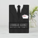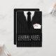 © Sunny Mars Designs - Terno Listrado: Convite de Despedida de Solteiro Poker Cantos Arredondados - Convite de despedida de solteiro personalizável para noite de cassino em Las Vegas ou noite de pôquer com terno ou smoking listrado preto e cinza, gravata preta e camisa branca com um conjunto de quatro ases saindo do bolso. Personalize-o adicionando seu próprio nome e detalhes. Você pode alterar a fonte e o tamanho do texto clicando no botão 'personalizar'.