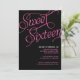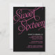 Este convite preto e cor-de-rosa elegante do doce 16 é inteiramente customizável. Convida são preto com as palavras "doce dezesseis" na rotulação formal cor-de-rosa. Para muitas meninas, ter um partido dezesseis doce é em segundo somente a seus planos para seu outro "dia grande". Se você está planeando uns dezesseis doces party, ou um Quinceanera, um convite formal é maneira elegante de recolher amigos e família. Este design moderno faz o cumprimento perfeito a um partido do doce 16 que seja certo ser memorável.