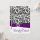 Convites pretos, roxos & brancos do casamento tema damasco - cada convite do casamento tema damasco caracteriza um envoltório impresso em torno da fita roxa com um enfeite redondo da curvatura do diamante para um toque feminino adicionado. Abaixo da fita impressa, a metade inferior é branco torrado. Acima da fita na metade superior de cada um convide mostras e o impressão elegante do damasco preto e branco. Os envoltórios do design ao redor à parte traseira e caracterizam o mesmo design com uma caixa de texto elegante protegida em um muito claro - o roxo para permitir o texto estala para fora. A caixa de texto igualmente permite que os gráficos espreitem completamente para o dom adicionado. O tipo de papel é ajustado ao estoque de linho do convite para um fancier convida; contudo, você pode mudar o tipo de papel a básico, feltro ou metálico sob a laranja personalize o botão abaixo do programa demonstrativo do convite. Cada convite vem com um envelope branco.