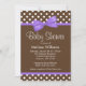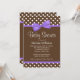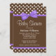 Um convite roxo e marrom na moda do chá de fraldas. Caracterizando as bolinhas brancas e um gráfico roxo do arco. Aperfeiçoe para um chá de fraldas da menina. Personalize facilmente! O design é ilustrações/gráficos impressos plano - FITA NAO REAL.