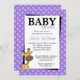 Um convite bonito e moderno do chá de fraldas do girafa no roxo e no preto. Aperfeiçoe para um chá de fraldas da menina! Doodles de Scrappin do © dos gráficos em www.scrappindoodles.com