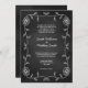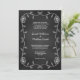 Convites de casamento russos com bordas de girassóis e videiras, em um fundo de chalkboard preto. A imagem de giz desenhado com a mão é perfeita para o seu casamento do tema rústico. Obtenha os cartões de RSVP de casamento de chalkboard correspondentes.