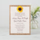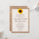 Um convite de casamento para um país rústico mostra um design de burlap impresso com um girassol impresso no topo. Este anúncio apressado é perfeito para um casamento no campo. Adicione seus próprios detalhes de casamento a este anúncio rápido. A parte de trás do convite também tem design. Use a opção "Personalizar" se quiser mover as coisas, alterar as cores da fonte ou adicionar ou excluir linhas de texto.