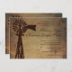 Convites rústicos do casamento da fazenda do moinho de vento do país com um fundo marrom afligido. Apenas adicione seu próprio convite do casamento que exprime a este modelo. O design rural da silhueta do moinho de vento da fazenda está igualmente na parte traseira do convite.