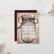 Os convites rústicos do casamento do país do frasco de pedreiro com um sepia matizaram o frasco de pedreiro em um fundo afligido.  O frasco de pedreiro tem um arco amarrado em torno dele.  A parte traseira do convite é marrom escuro com a palavra "amor" é roteiro branco no centro.  Estes convites wedding afligidos são grandes para todo o casamento do estilo country que inclui casamentos rústicos, casamentos do celeiro, e quaisquer casamentos usando frascos de pedreiro na decoração da recepção de casamento.