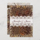 Convites rústicos do casamento de Camo do país que caracterizam um fundo da camuflagem de agulhas do pinho, de cones do pinho, de folhas, e de outros artigos do assoalho da floresta. Um design impresso do laço vai através do convite com os nomes dos noivos. O outro lado do convite tem o fundo da camuflagem com os detalhes do casamento e um laço e o enfeite impresso guita na parte superior do convite. O laço é apenas um design impresso, tecido nao real do laço. Estes convites do casamento do camo do país são perfeitos para qualquer um que ama o país, caça, camuflagem, ou está tendo um casamento exterior do país.