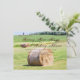 Os convites rústicos do casamento do país dos pacotes de feno do campo que caracterizam um país bonito colocam a cena com os pacotes de feno colhidos, grama verde, e árvores e arbustos de florescência bonitos. Estes anúncios do casamento seriam grandes para um casamento do rancho do país ou da fazenda.