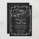 Coma, beba, e é casado -- Goste de convites do casamento do quadro -- Swirly, os swooshes encaracolado e a tipografia retro do estilo bonito do Victorian fazem um convite preto e branco atraente do casamento. Adicione seus nomes e informação wedding neste modelo fácil de usar. O giz e a tipografia misturados elegantes denominam a tipografia para um tema rústico formal ou semi-formal. Aperfeiçoe para casamentos modernos na moda com um toque sofisticado romântico do encanto rústico clássico para os noivos tradicionais. Nota:  Mostrado em 4,5 x 6,25 cartões pequenos do convite - outros tamanhos e estilos disponíveis na loja. Contacte-nos por favor para a ajuda com personalização se você precisa a sala adicional para seus detalhes do casamento.