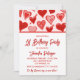 Convites simples de 1º aniversário para ela Corações vermelho rosa