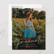 Esta combinação de convite para apresentação de na moda, elegante e de licenciatura, apresenta uma camada de formandos de script e um nome personalizável, escola e foto na frente. O backside oferece gratos e detalhes de eventos com mais 2 fotos. Uma forma excelente de mostrar seu formando.