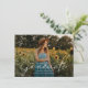 Esta combinação de convite para apresentação de na moda, elegante e de licenciatura, apresenta uma camada de formandos de script e um nome personalizável, escola e foto na frente. O backside oferece gratos e detalhes de eventos com mais 2 fotos. Uma forma excelente de mostrar seu formando.