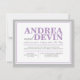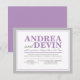 Convites somente para recepção de casamento com um design de tipografia roxo e cinza. (Devido à precisão do alinhamento deste design, é aconselhável clicar no botão laranja "Personalize!" para mover e redimensionar o texto conforme necessário.) Estes convites são usados quando o casal tem um casamento em destino ou uma cerimônia privada pequena, e apenas convida os convidados para a celebração pós-casamento, a recepção.
