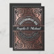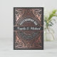Folha de ouro cor-de-rosa dos convites da festa de noivado no preto. Estilo retro do poster do damasco de Deco do vintage elegante de cobre