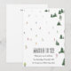 Um modelo de convite com ilustrações em aquarela de esquiadores e praticantes de snowboard coloridos em uma encosta branca de montanha de inverno.
