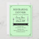 Convites à moda do jantar de ensaio do casamento do verde da hortelã.
