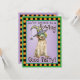 Convide todos os seus amigos para uma festa de boas-vindas neste Halloween com convites mostrando um filhote fofo giro que aponta Griffon vestindo uma máscara verde e um chapéu de bruxa com uma aranha bobo. Tenha um feliz partido de HOWL-interpolação!