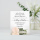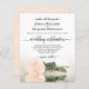 Este convite de casamento é elegante, elegante e bonito, enquanto ainda é amigável e barato. Apresenta uma simples design romântica com uma rosa cor de laranja ou de pêssego marfim, solteiro longo e enraizado, refletindo numa piscina de água com ondas e ondulações. A tipografia inclui a caligrafia com escrita clássica com pestanas, caudas e florescimento. Uma maneira maravilhosa de convidar seus amigos e família para compartilhar sua alegria em seu dia especial sem quebrar o banco.