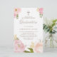 Convide familiares e amigos para o seu evento com este convite de dedicação personalizável para bebês. Apresenta ilustrações em aquarela de rosas, peônias, hálito de bebê, verde e galhos. Personalize este convite de dedicação para bebês cor-de-rosa-claro adicionando seus detalhes. Este convite para a dedicação de bebês é perfeito para as dedicações a bebês de primavera.