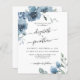 Este elegante convite de casamento botânico azul empoeirado apresenta flores pintadas manualmente em azul-ardósia com verde e roteiro de caligrafia moderno. Um convite de casamento botânico moderno em azul pastel. Você pode personalizar o texto, o estilo da fonte, a cor e o tamanho em frente e atrás do convite. Você é bem-vindo para me contatar para encontrar itens correspondentes.