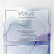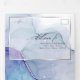 Espalho etéreo de manchas de tinta alcoólica em tons de aqua em greve, violeta roxa e lilás pálidas - cada seção destacada com uma camada branca esmagada em prata de platina, no centro da frente está sua foto destacada com uma estrutura de ouro dupla e atrás da camada branca pura para um apelo esotérico um belo desenho abstrato moderno para todos em um convite de casamento completo com uma refeição prévia escolha rsvp para seus convidados enviarem e-mails facilmente - um espantoso convite de casamento -