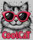 Minimalist cat face with bold red glasses and hand-drawn "CoolCat" typography — a playful, stylish design perfect for t-shirts, stickers, and accessories.