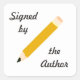 Uma etiqueta adesiva para indicar um livro, revista, artigo, foto, etc., tem uma autógrafa do autor/ilustrador/ do artista/ fotógrafo acoplada.