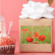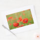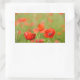 Vinheta-foto retangular de flores vermelhas vibrantes de papoila em um cheio verde de papoila. Tem uma forte emoção de felicidade, primavera e verão.