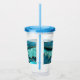 Copo De Acrílico Agate Teal Blue Glitter Marble Aqua Turquoise