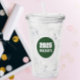 Tumbler moderno e acrílico com palha de tampa e bebendo para o segundo grau ou formando universitário com cores escolares caçam verde e branco, com letras em negrito impressas em branco num círculo verde caçador com borda branca.