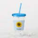 Cachorro floreal de acrílico, com uma bela imagem de girassol sobre fundo azul. Você pode personalizar com texto preto, perfeito para ficar hidratado com o estilo do seu país.