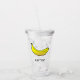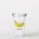 Banana amarela num Tumbler acrílico. Personalize o texto no Tumbler.