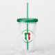 O tumbler acrílico com palha apresenta um anjo que veste a bandeira de Itália para decoração de férias ou decoração de Natal. O anjo de Natal da Bandeira italiana é encontrado rodeado de texto que permite adicionar seu próprio texto ou personalizar com um nome e o ano. A inscrição é verde. Um belo presente de Natal.