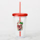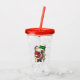 Esta bebida acrílica que cambaleia com palha e tampa tem um Papai Noel bonitinho parado na neve cercado por pequenos animais de floresta e pássaros por uma pequena árvore decorada segurando uma placa verde de Natal Feliz na frente e atrás.