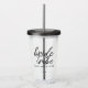 Copo acrílico simples, moderno e elegante com citação "Bride Tribe" em fonte script em preto e branco em um estilo moderno. Os nomes podem ser personalizados com os nomes das suas damas de honra. Você pode usá-lo para a noiva, damas de honra, meninas de flores ou Mãe da Noiva. Os acessórios coordenados para a equipe da noiva funcionam bem para propostas de damas de honra, chá de noiva, despedida de solteira, jantar de ensaio, manhã do casamento ou brunch do dia seguinte ao casamento. Faz um presente personalizado atencioso para a comitiva da noiva.