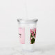Este trapo acrílico com a sua própria tampa e palha tem uma imagem de tulipas sobre fundo rosa que envolve completamente o trapo claro. As faixas de acento fino rosa-quente enrolam-se à volta da frente para trás, no topo e no fundo da imagem. Texto personalizado das damas de honra e uma data para você personalizar. Lid e palha mostrados em claro. Escolha sua tampa de cor/conjunto de palhetas. Personalize este item ou comprar conforme mostrado. cortesia da imagem de estoque de freepik.com