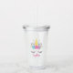 Tumbler feito sob encomenda bonito do acrílico do unicórnio. Características de design uma cara e flores do unicórnio no roxo, no rosa e na cerceta.