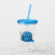 Esta bebida acrílica que cai com palha e tampa tem um caracol sorridente e bonito com olhos brancos e uma casca azul esboçada preta.