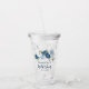 Personalize este copo de vidro de chá de noiva clicando no botão "Personalizar" acima. Apresenta flores elegantes modernas em azul empoeirado com folhagem branca, azul claro e verde sage. DICA: Também é ótimo para festas surpresa, chás de bebê, recepções de casamento e festas de aposentadoria.