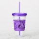 Esta bebida acrílica tropeçando com palha e tampa tem um corvo solteiro na silhueta preta sentada em galhos de árvores estéreis pretas contra um céu roxo assombroso.