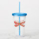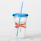 Articulado artificialmente, ouro, libélula joalhada com vermelho e asas decoradas com cereja japonesa vermelha, florescente e joalhada sobre fundo branco. Dourada Dragonfly.