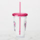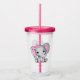Um tumbler acrílico com uma ilustração de aquarela elefante rosa e fofinha. Ela tem orelhas bonitinhas, cor-de-rosa e bolinhas branca e arco bonito de fita rosa sobre a cabeça.
