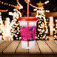 Ponha sua bebida fria favorita neste moderno batedor acrílico com tampa e palha de bebendo que apresenta a foto de Poinsettias, ditas, também conhecidas como a flor de Natal. A imagem é impressa em dois lados. Um design floral adorável para os feriados!