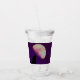Uma foto de um lobo uivando na lua. O fundo é uma bela sombra de roxo.