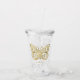Copo De Acrílico Mármore Branco e Borboleta Geométrica Dourada