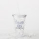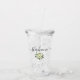 Limpo plástico reutilizável caneca de palha com "Flor Girl - O Torna Bonito" em letras modernas e modernas, com uma imagem de buquê de flor no verso e um nome personalizado impresso por medida em uma elegante letra cursiva caligráfica, é um presente de proposta de flores, um favor de manutenção de chá de panela ou festa de noivado, ou parte de um conjunto de presentes de noivas.
