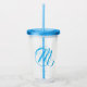 Nome personalizado e letra monográfica Flower Girl Name Simples, azul minimalista e claro Chá de panela tipografia e presentes personalizados Festas de casamento Claros acrílicos Tumblers com tampa e palha