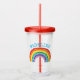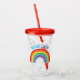 Tumbler acrílico bonito personalizado arco-íris das meninas dos miúdos. Arco-íris colorido bonito com nome acima na pia batismal azul. Edite para mudar o estilo ou a cor de pia batismal. www.SamAnnDesigns.com